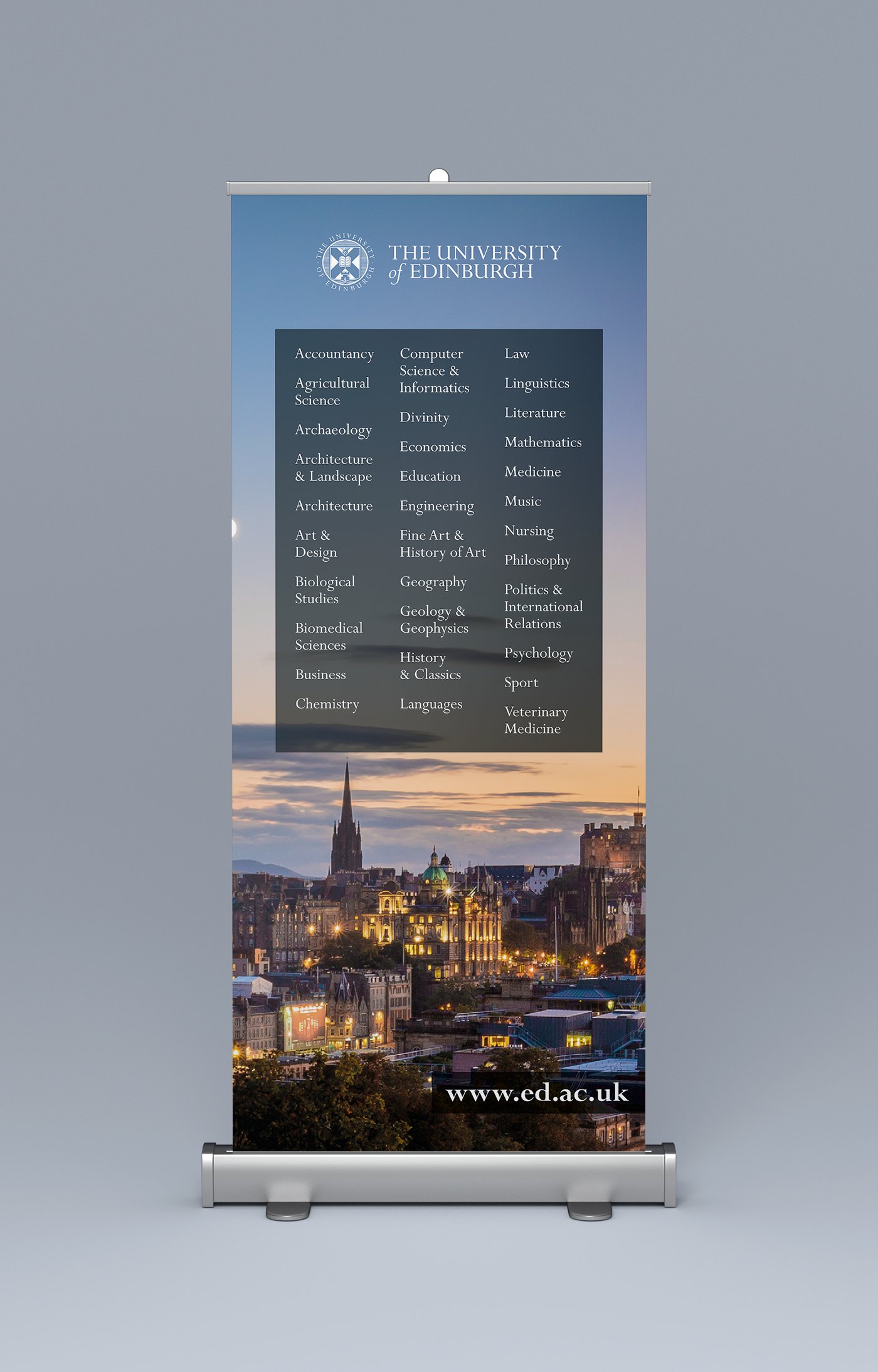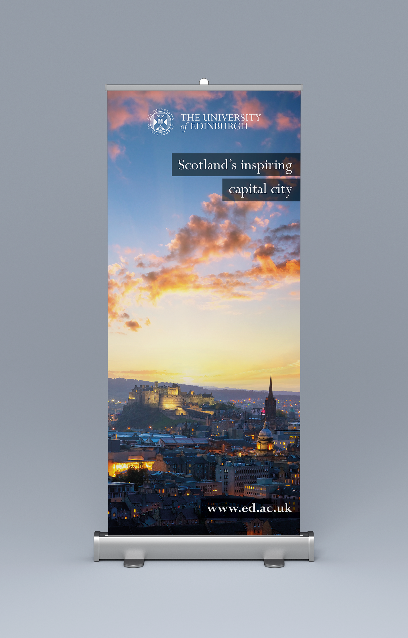 Recruitment banners and printed adverts for the University of Edinburgh’s international recruitment campaigns, led by their Recruitment and Development team.